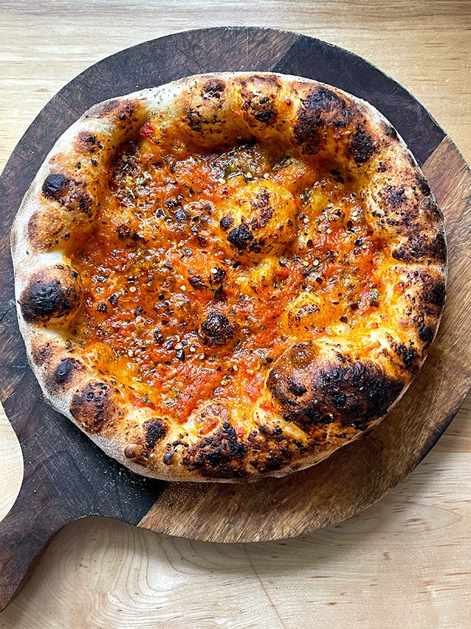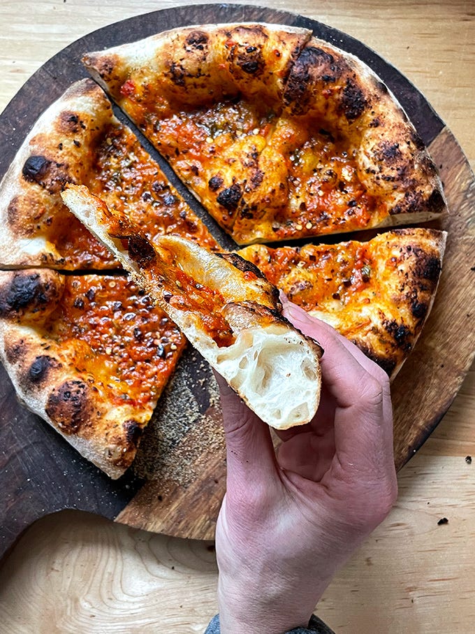 During these conversations, Steve asks all the burning questions — What type of flour? Is the dough leavened by yeast or a natural starter? What’s the dough’s hydration and how long is it fermented? What kind of cheese? How hot is the oven? —and in doing so, he not only sheds light on the pizzeria’s process but also unearths much of the backstory and inspiration, all of which I find fascinating.